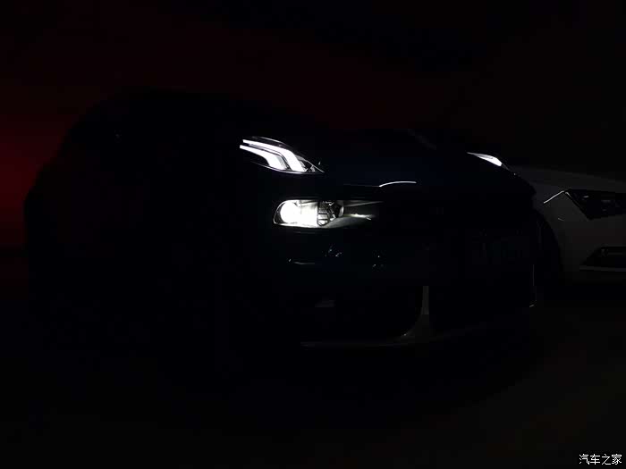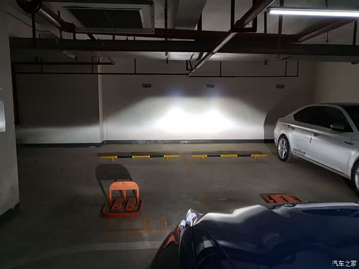 远光亮得非常刺眼,现在不能直视,图片可以看出海拉5的亮度是原车LED远光的几倍。