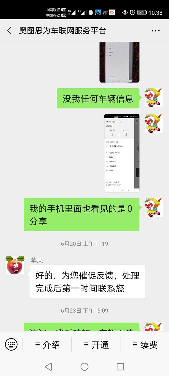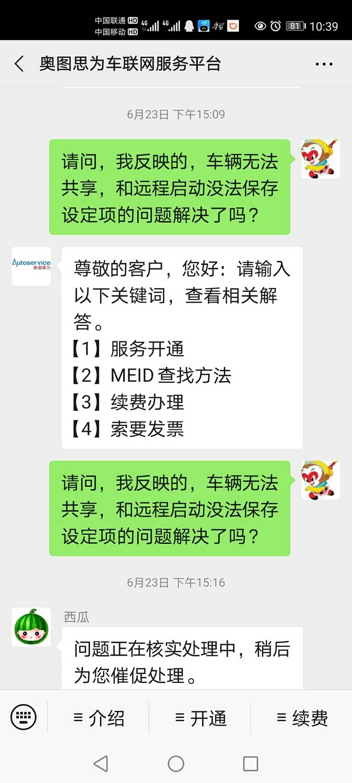 问题1:车辆共享功能无法正常使用,电话问了4s店,说如果车辆分享功能有问题,目前就只能让我家人使用我本人注册的邮箱账号登录,(这种方式有个新问题,使用我的注册邮箱登陆后启动车辆后,是否启动成功是通过短信方式反馈车主,用我的注册邮箱号登陆启动,所有反馈信息都是发送到我的手机,实际用车的家人是收不到反馈信息的,启动成功了还好办,如果没有成功,我还得电话告知家人,需要再次远程启动)。此处顺便提个问题,为啥不在app中直接信息反馈?通过短信方式还得给运营商付费用,都5G时代了还用短信?就算5G还没普及,kx3的车机都能在线更新软件说明至少3/4G网络是通的,为啥用短信真的搞不懂?