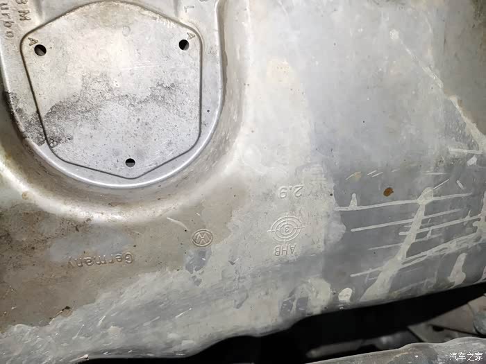 上架子,拆掉底护板,发现油底壳还是原车德产的