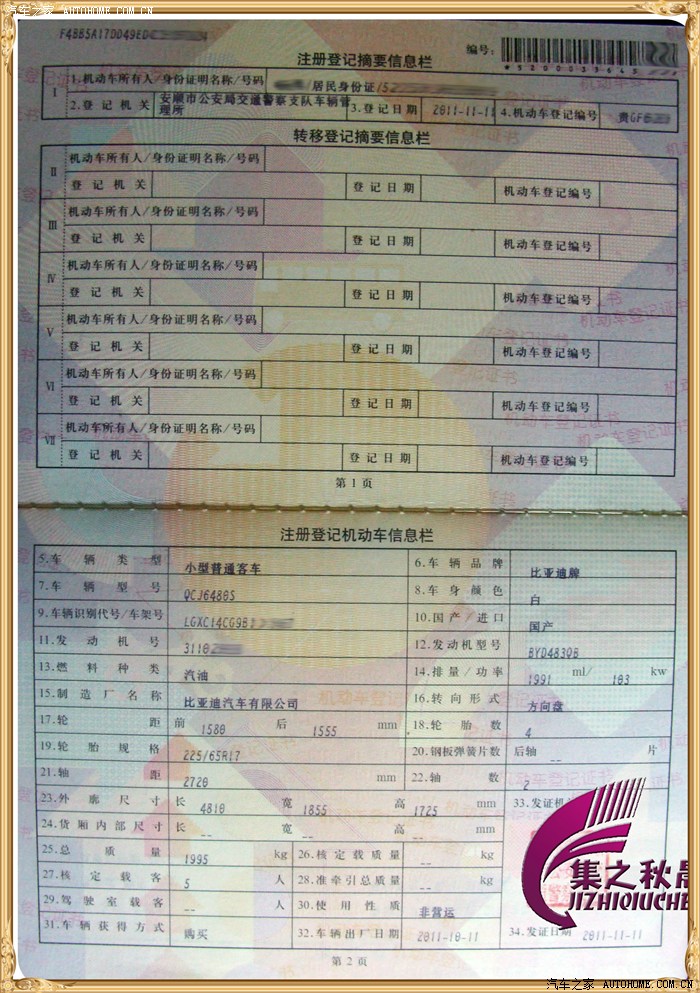 我的车是比亚迪S6最老的一款了,车是2011年11月11日登记上牌的。这个日子还可以吧,当时也没有想到要来做什么认证,所以也就没有照片。现在也不记买车的情况了,现在就说说这车的一些个人感受吧,也给要买这车的朋友们一些小小的参考。