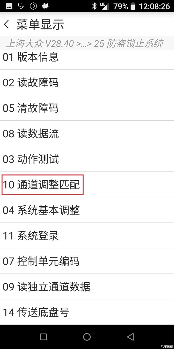 (1)打开诊断软件,选择"上海大众"车型,点击进入"25防盗锁止系统",进入该模块后,点击"10通道匹配调整".在输入框中输入"00"后确认保存。此时,发动机防盗指示灯熄灭不再闪烁,发动机防盗功能初始化匹配完成。退回到上一级菜单,点击“05清故障码”将防盗盒内的故障码清除后,选择退回至主菜单界面。