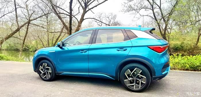外观看上去不是很大,设计造型新颖,看着小巧精致,时尚运动的小车。车内空间设计宽敞,座椅使用材质柔和,坐在上面挺有舒适感的。挺喜欢中间这块显示屏,尺寸大,上面搭载的功能也比较多,360度全景影像,卫星导航,车载电话,语音识别控制系统,车联网等功能一应俱全,开着操控简单,驾驶轻松。方向盘设计大小正好,握着手感不错,转动使用过弯敏捷,开着灵便性挺好的。这车平时上下班开的多一些,能耗使用比较低,百公里电耗也就在13.2KWh左右,节能环保,作为家用代步很合适。下面再来看看我的这款车。
