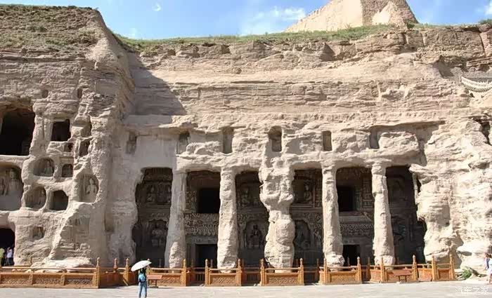 “天下大势,分久必合,合久必分”,在中国的南北朝期间,有一个鲜卑族拓跋氏建立的北魏王朝,公元398年,北魏迁都平城(今山西大同),北魏共建都于平城达97年之久,在此期间,北魏完成了统一中国北方的伟业,然后于公元493年迁都洛阳。随着时间的流逝,拓跋氏统一北方的伟业早已进入了历史的故纸堆,但定都大同期间,还留下了一项今天被列入世界文化遗产的宏伟工程,我驾驶宝来来到这里——云冈石窟。云冈石窟始凿于北魏兴安二(公元453年),大部分完成于北魏迁都洛阳之前,造像工程则一直延续到正光年间(公元520~525年)。
