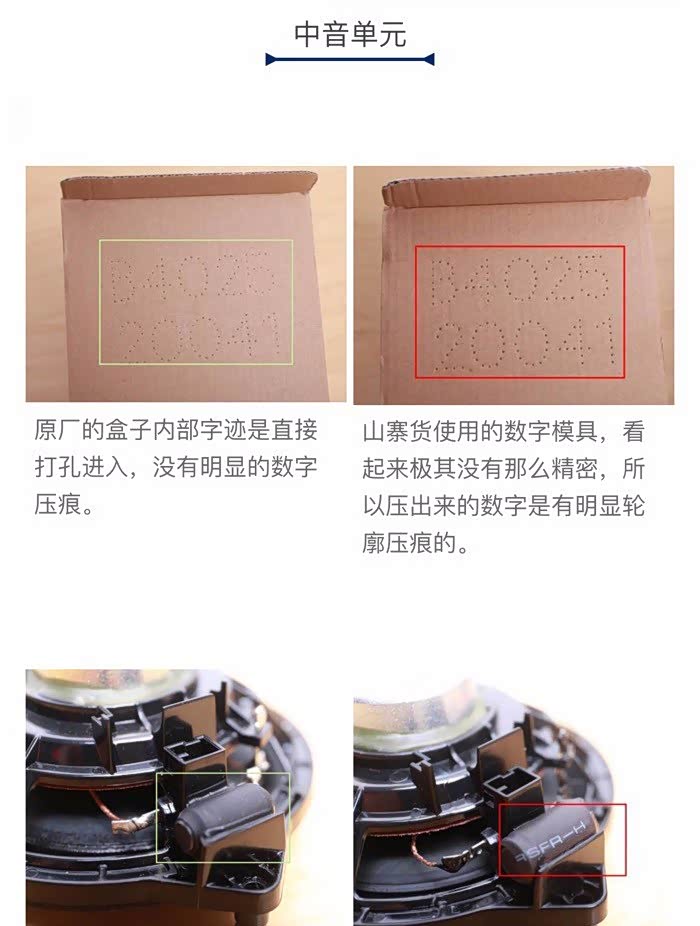 关于810柏林高音喇叭真假分辨!~关于高音喇叭还有一种高仿件电容是黑色的也是假的。