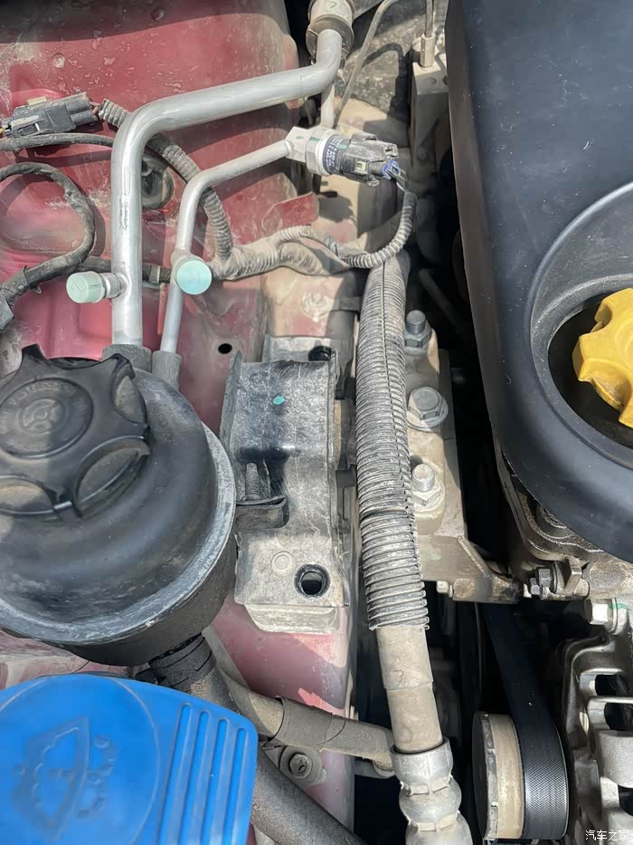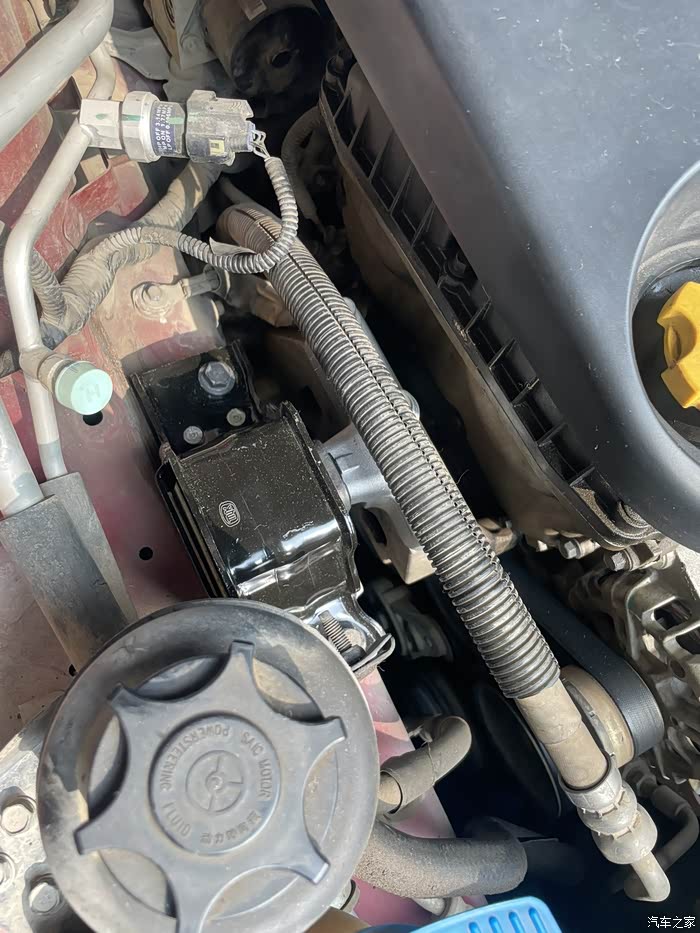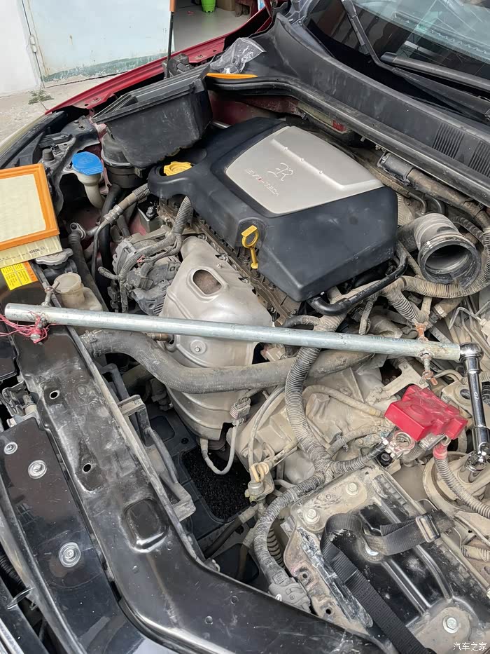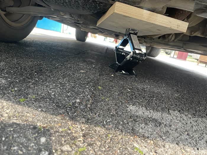按车友指导,用千斤顶顶起发动机