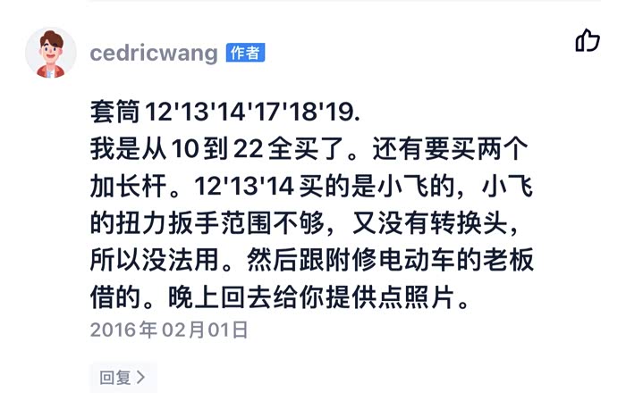 网友提供的工具清单,建议增加棘轮扳手,加力杆。