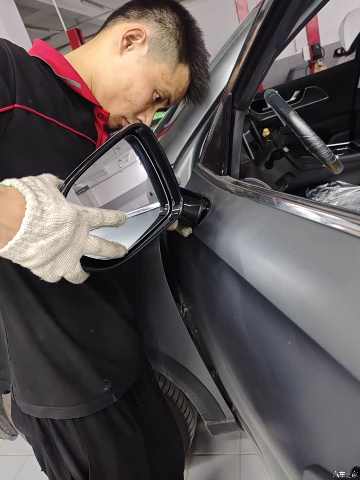 新的后视镜安装上去后,我仔细的检查了后视镜有无划痕,是否是新的后视镜。确认好一切后,我让售后把车开下去。