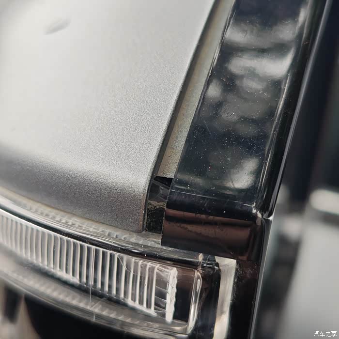 当时后视镜被他撞的开裂了,外壳出现了很大的裂缝,转向灯带也给他撞凹了进去,而且还缺了一个角。从外观上可以看到有这几处问题点,但是内部的结构有没有损坏?卡扣有没有烂?无法得知。