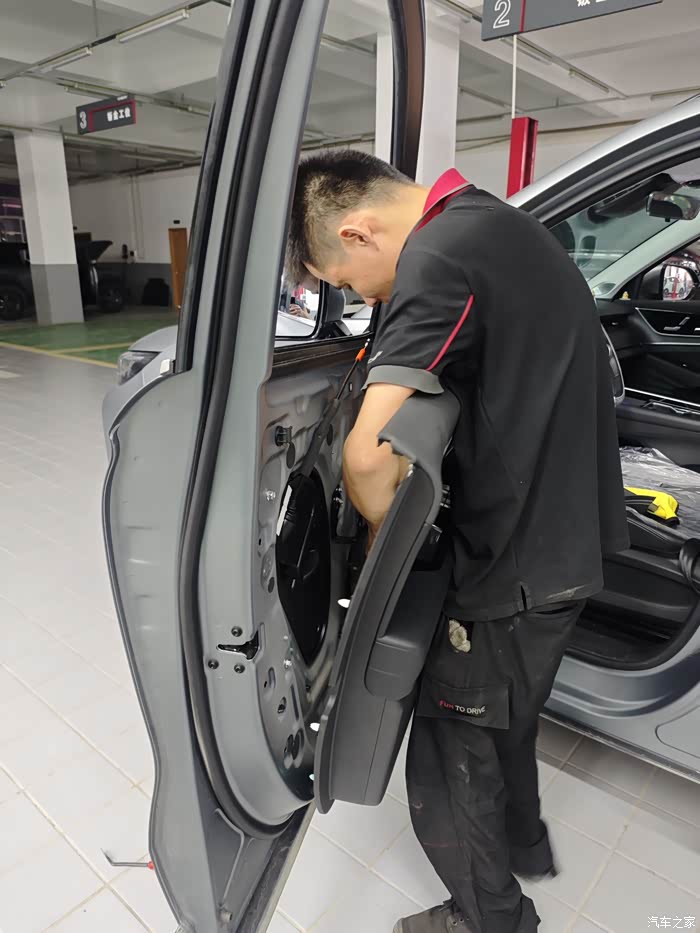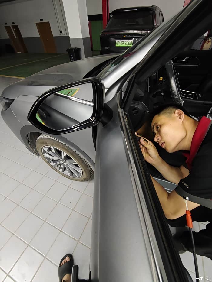 做好这一切,师傅又测试了门板上的玻璃升降开关是否正常。