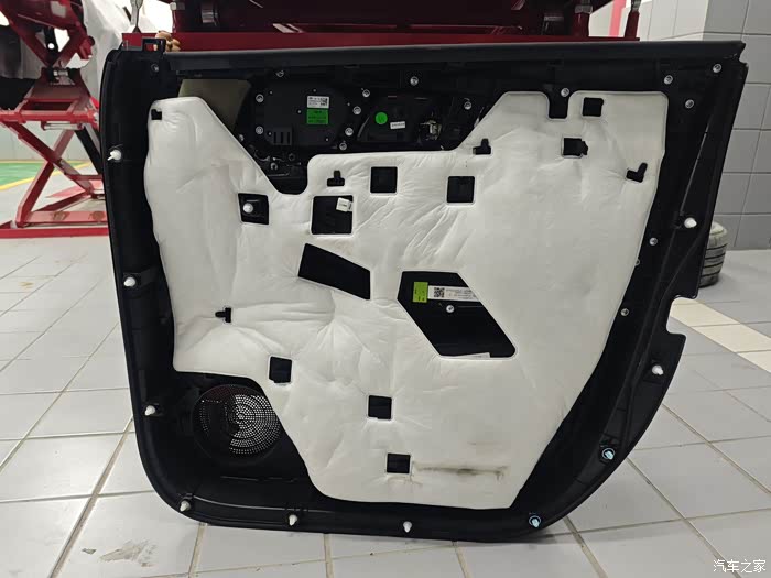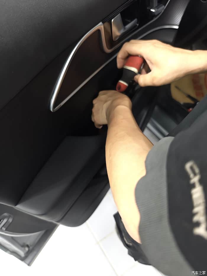 师傅拿着棘轮扳手和套筒,娴熟的把螺丝拧下来,又将门板拆下来,然后将门板上的所有卡扣拔掉。