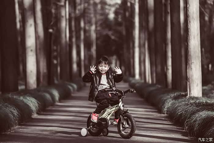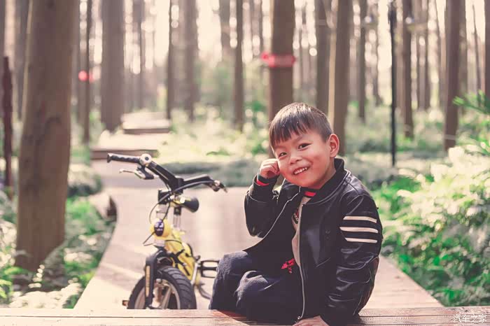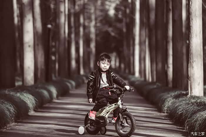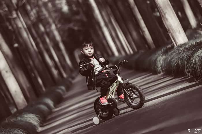 小家伙骑着自行车,悠哉悠哉的闲逛着