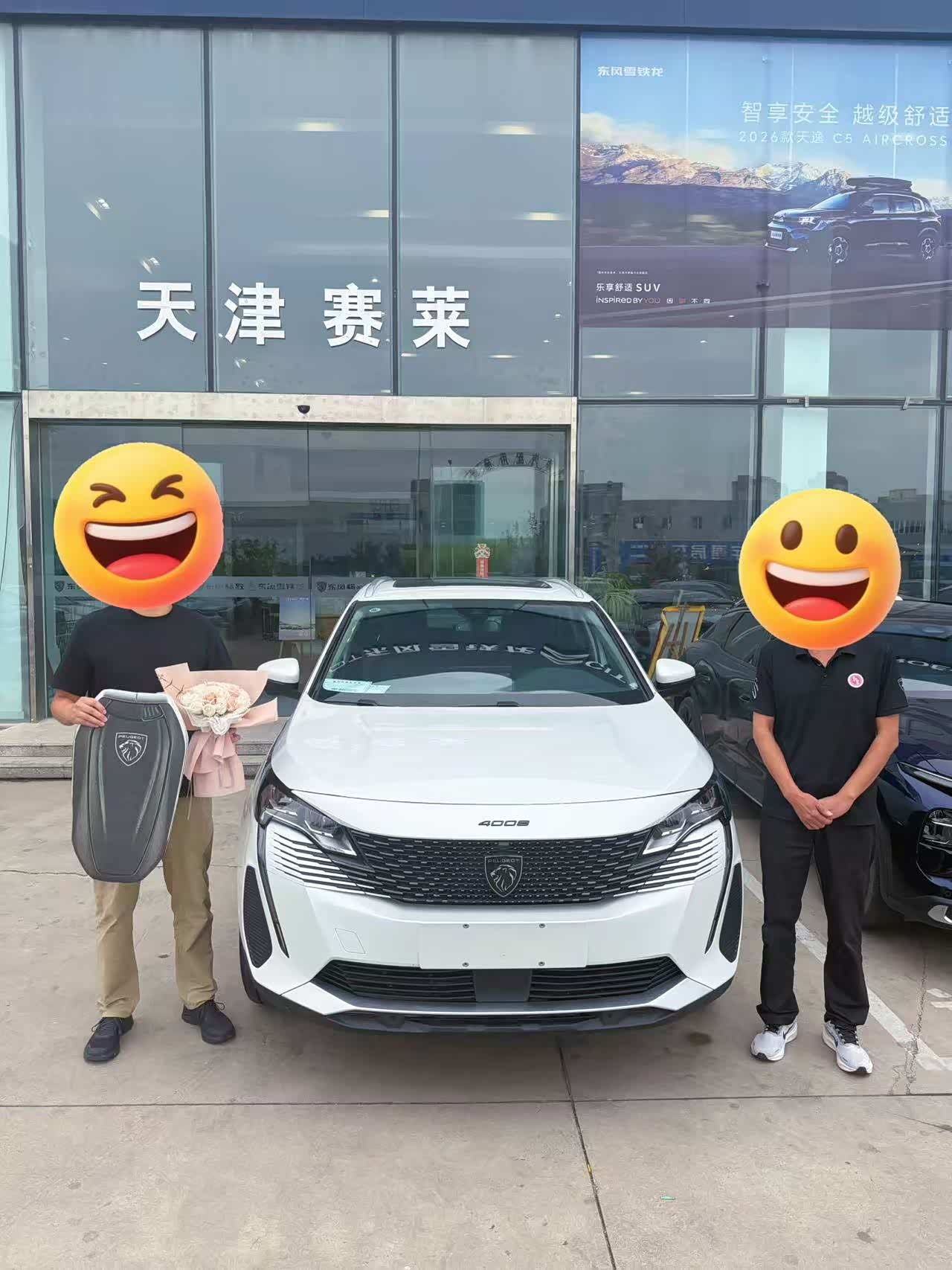 之前的旧车开了有10多年了,一直想换换,也没想好换什么车就一直拖着,我的旧车是雪铁龙的爱丽舍,说来这车也禁造,十多年了也没什么大毛病,后来想想还是继续买法系的车吧,起码皮实耐造,质量还是不错的,媳妇说想换个suv,于是我们就去店里试了4008这款车,还有一款大一点的5008是七人座的,5008一是超出我们的预算一个,而且我们对七人座也没有需求,所以最后把目标锁定在了4008身上,这款车造型媳妇比较喜欢,我们选的科技版,配置什么的也相对于够用,而且它的全景天窗我俩都很喜欢,试驾过后感觉车子倒是挺好开,底盘比我的爱丽舍又有所提升了,毕竟又过了10来年,科技肯定进步了,和销售也砍了好几轮价,感觉他也挺为难的,跟领导申请了好几次,最后终于给多优惠了些,又送了几样礼品,我们感觉差不多,在我们的预算内,就成功订车了,销售人员倒是挺负责的,给我们跑前跑后,不到一个星期就提车了,还是比较顺利的,提车时工作人员给拍了几张合影留念,先说到这,给大家上几张图吧,大家的4008开着都怎么样啊,欢迎一起交流啊
