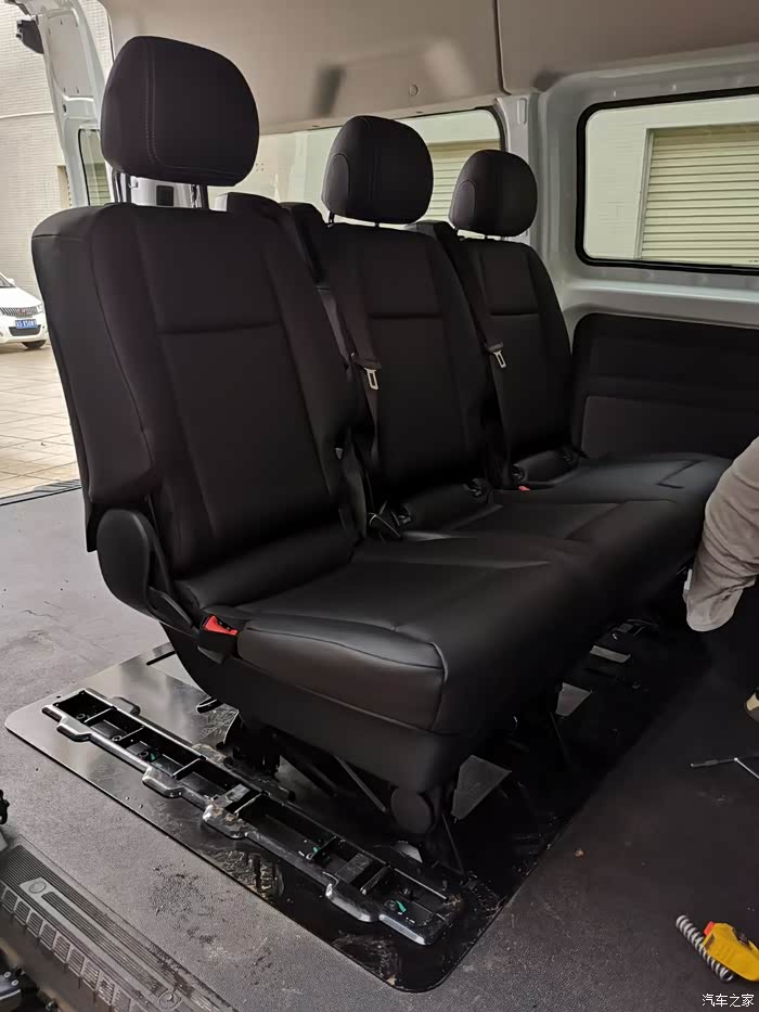 座椅的话原厂奔驰商务车座椅,舒适性不错,设计挺人性化的,座椅安全系数高,安装简单,座椅装车后可用性高,拆卸方便,更好利用车内空间,座椅可以前靠,前翻,也可以拆下搬出车内,拉货客运更好利用。