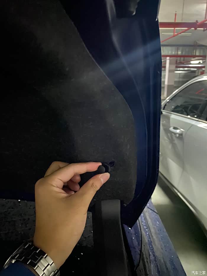 打开后备箱 把卡扣撬下来 一共两个