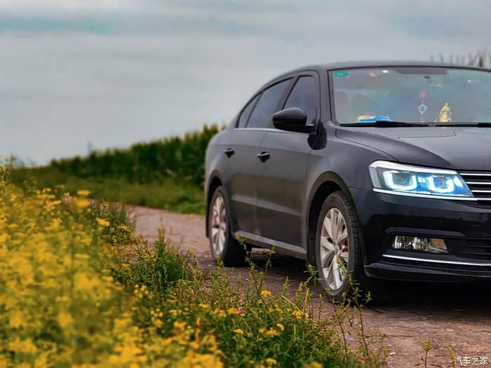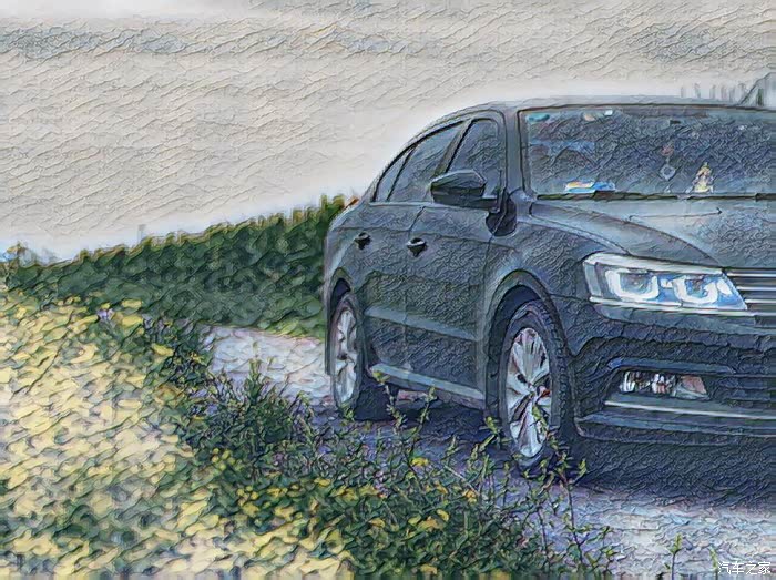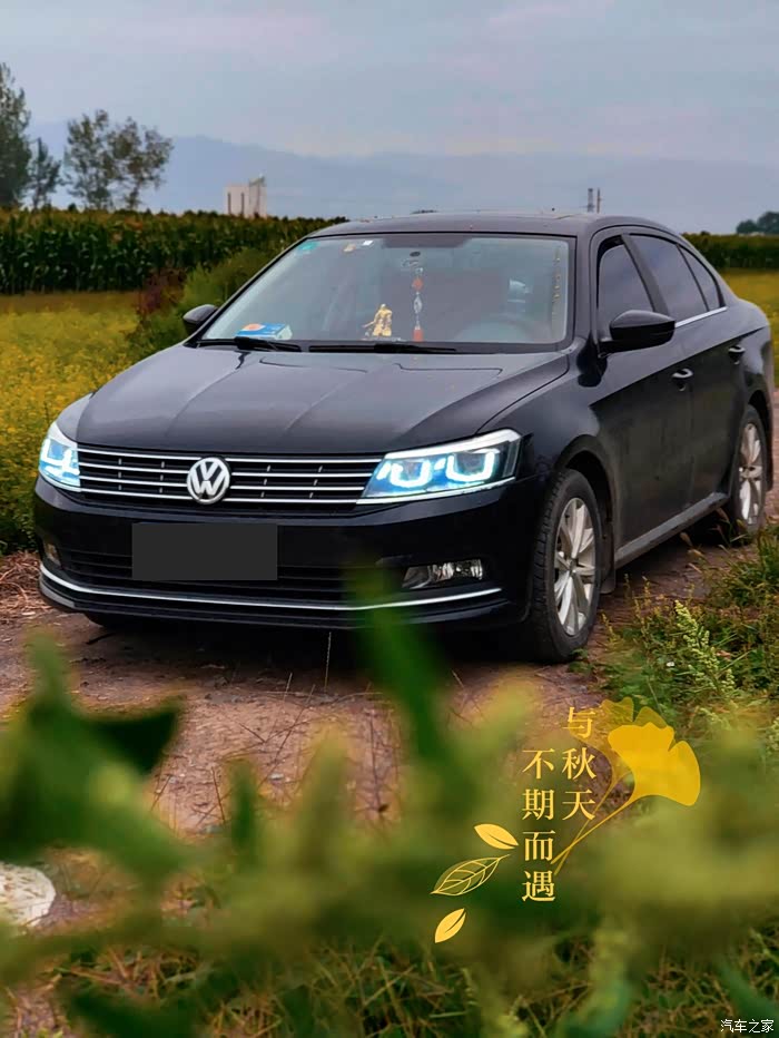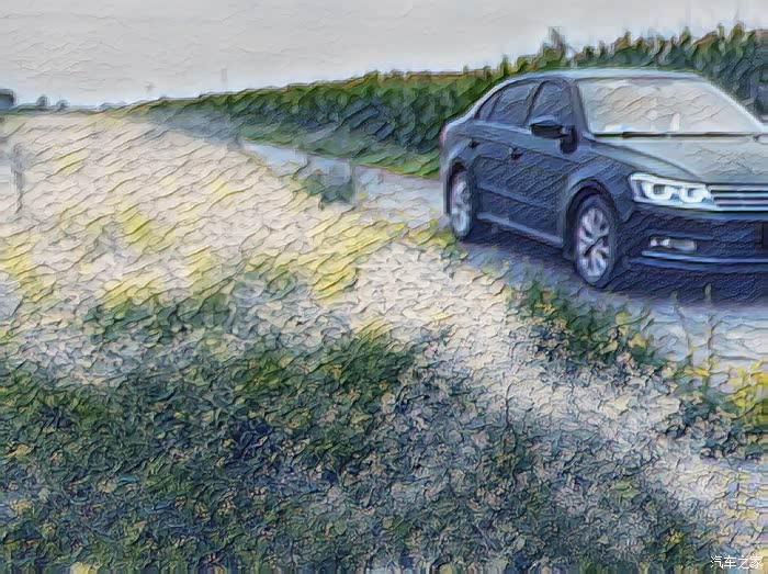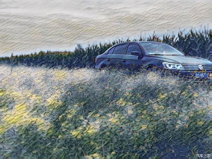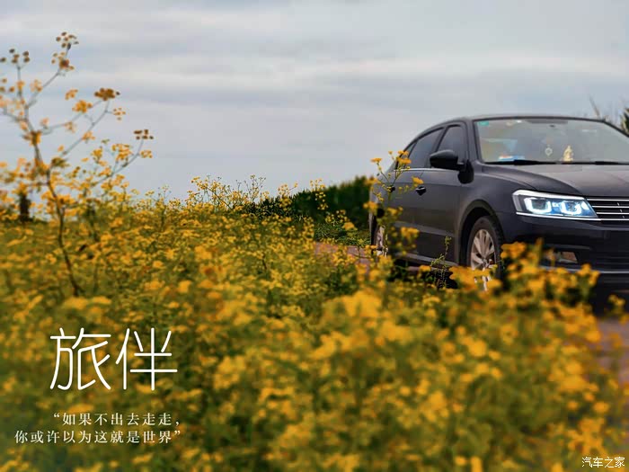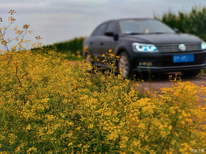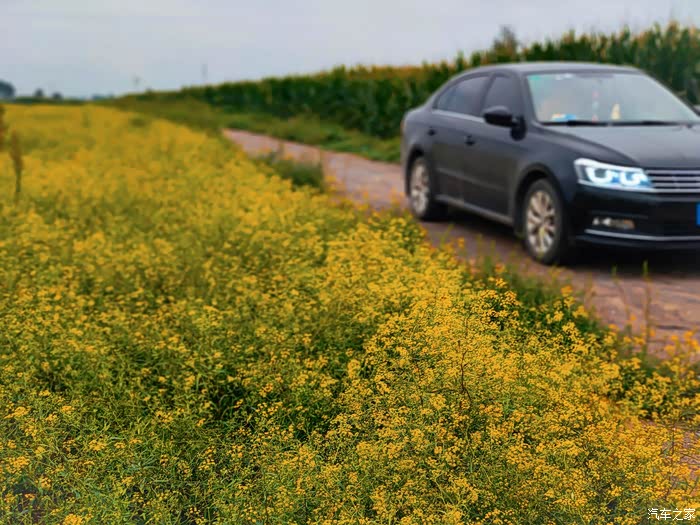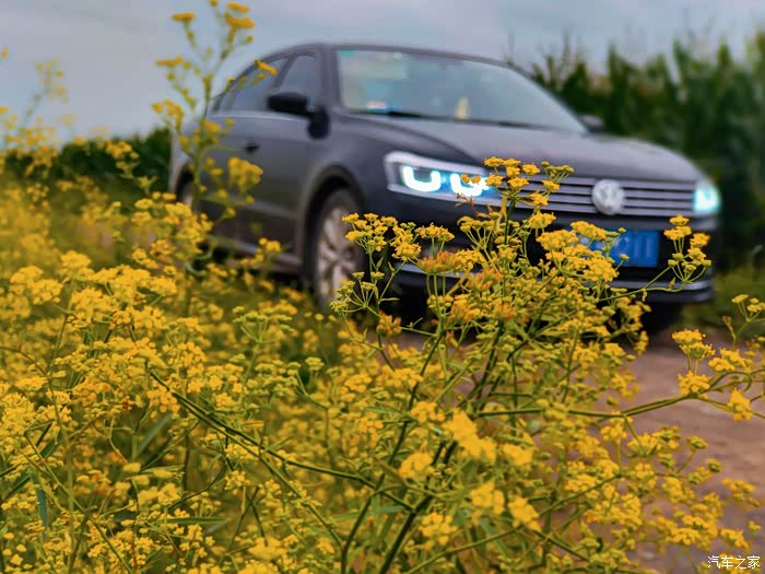 优雅的爱车,坐落在花的海洋里,黄绿相兼、色彩斑斓,云淡风轻、若隐若现,好一幅秋色渲染的绝美画卷。