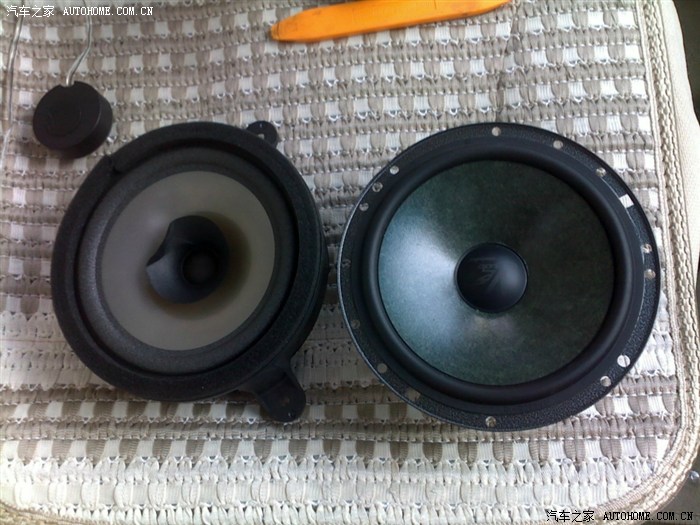看到拆下的两个喇叭了吗,这就是原车的,真的很差劲的