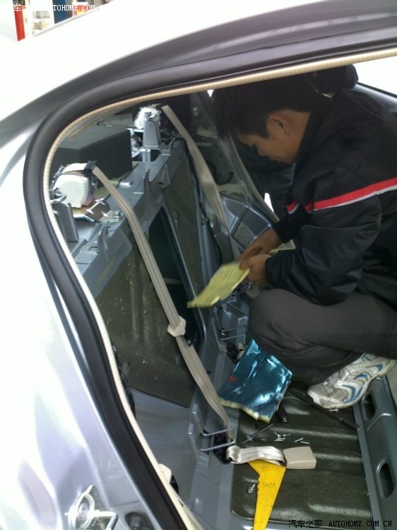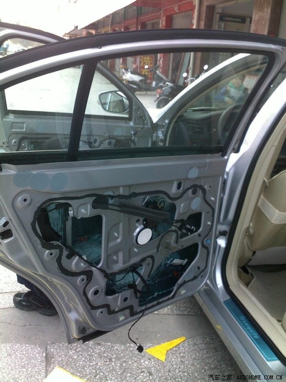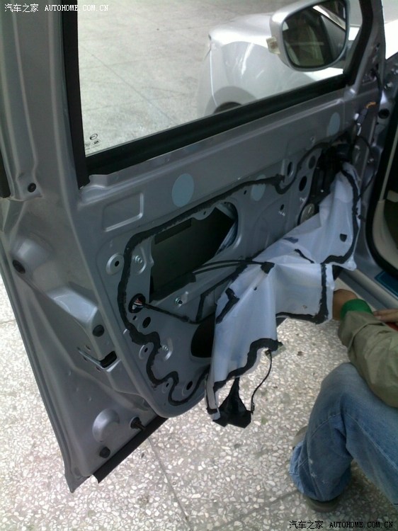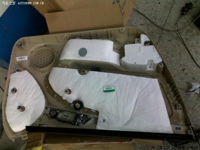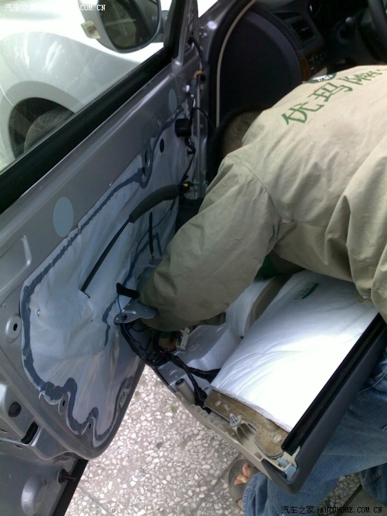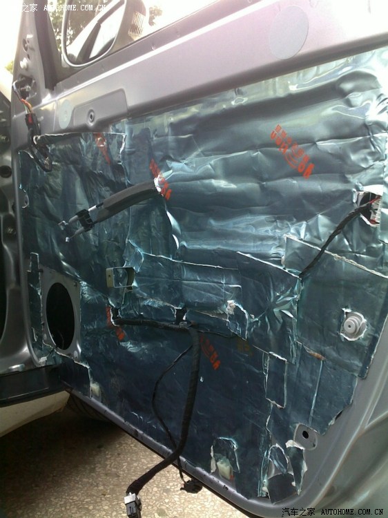 谈好价格开始开工,因为时间原因只做了四门,换了前四个喇叭,隔音效果暂没有试出来,我对手工很不满意,剪一块块贴上,像打补丁一样难看。因为在城区只能低速开车,但感觉门厚实了很多。