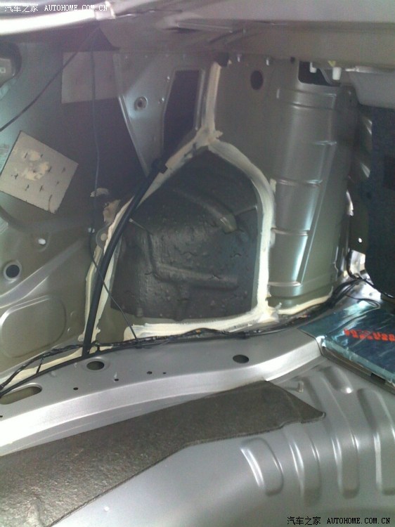 今天有时间继续做完后尾箱隔音、换后两个喇叭加装功放一个,音质明显不一样,好了很多。朋友一定会问多了米吧,隔音花了850块,音响共花了2650块,共花了3500块,由于米不足,只能做这样了,比原来好点就OK了,见笑了。不多说了,看图,可以的话,请射一个吧