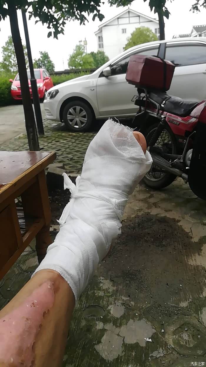 包扎好后回家,随便在哪里,都像大爷一样翘着脚,这包扎得有点像木乃伊