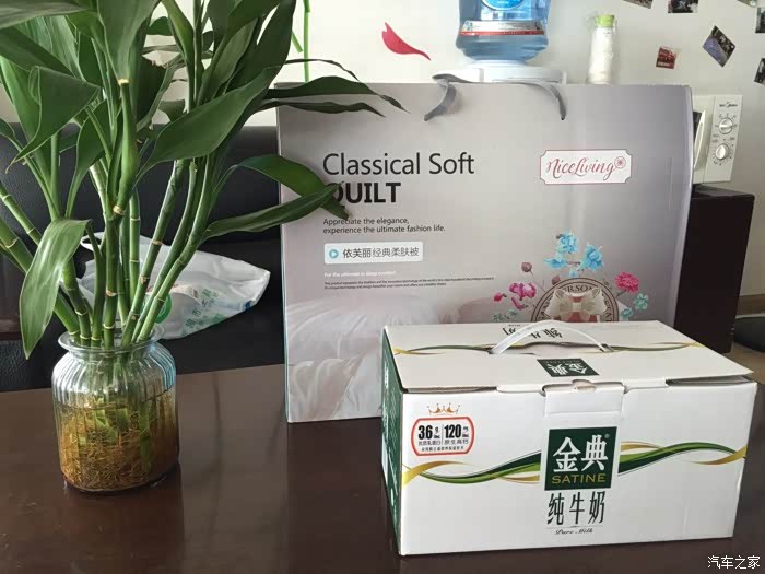 这是送给我的礼物,牛奶补充营养;凉被,在沙发上躺着的时候盖脚刚刚好!好贴心的