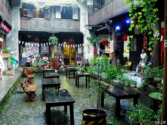 寻着声音走进一家老舍,发现里面别有洞天,几个年轻人端坐在话筒前悠扬的唱着歌,而四周也都是些年轻人悠闲的听着
