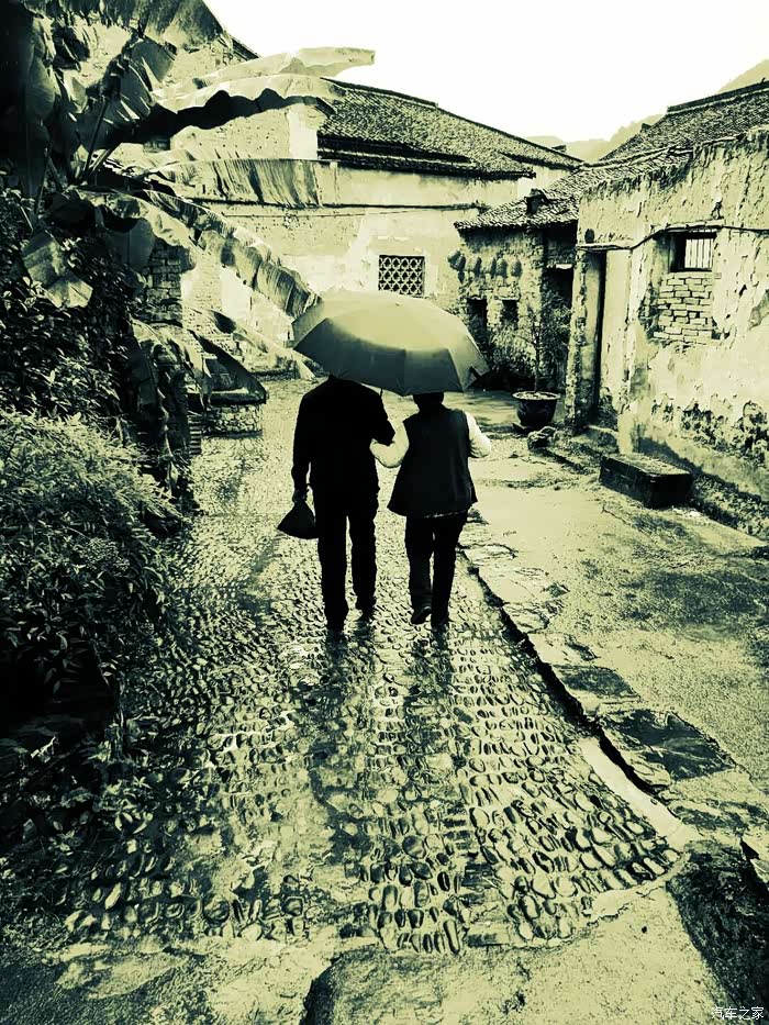 偶遇一对老夫妻共撑一把伞路过,赶紧拍下来,感觉与这景色完美融合了