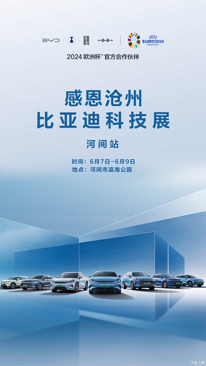 这是比亚迪为感恩沧州、回馈广大车友的一次盛会,千万不要错过!6 月 7 日-6 月 9 日,河间,我们不见不散,一同探索比亚迪的科技未来!