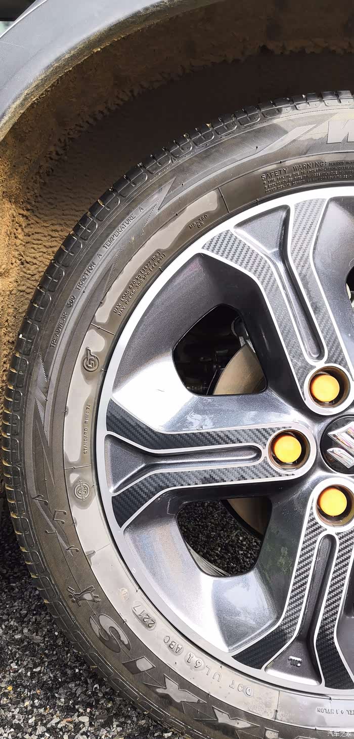 轮胎表面有一层类似液体釉膜一样,有点点油渍的感觉