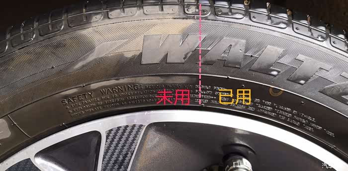 为了更好的做对比看有没有效果,特意一只轮胎喷一半,留一半未喷