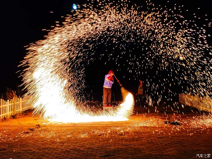 晚餐后,夜幕降临,酒店组织游客开展篝火晚会,伴随着热烈激昂的草原歌曲,一个只在电视里见过的打树花表演瞬间拉动了气氛