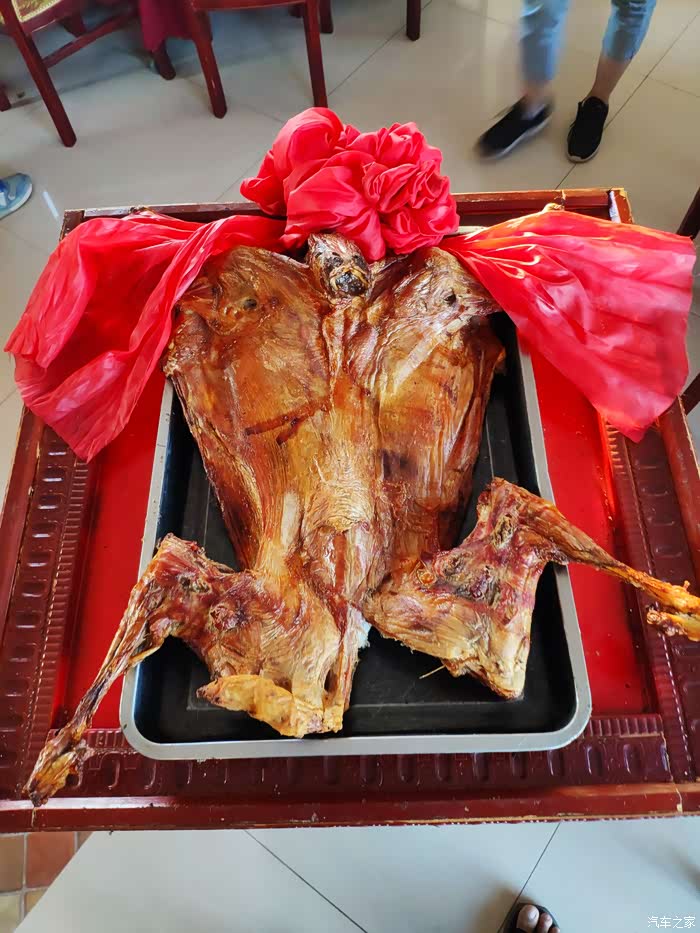 之后来到入住的酒店,草原上的民营酒店大都是平房,或者二层楼房,用电没有保障,经常突然停电,因为担心负荷太大影响供电,酒店里每个房间的电水壶都没有底座,喝开水只能到电茶炉处接取。晚餐不错,我们三桌人,上了一份烤全羊,虽然很小,但在草原品尝也算是别有风味