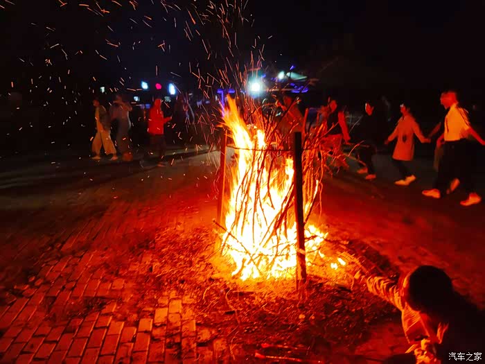 旁边,篝火也已点燃,大家跟随音乐,手牵手蹦蹦跳跳,甚是开心