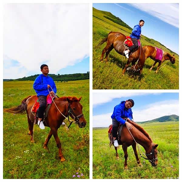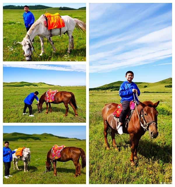 。于是,跟大爷预定了今天上午,我们一家三口一人一匹马,谈妥的价格是60元/匹马/小时。