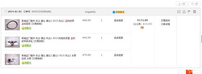 下面是我交易记录截图,本来不想曝光他家,但想想论坛里的兄弟如果和我一样买了正时两万就断了,如果正好是在高速上坏的呢,哎不说了,拿着这根断皮带到当地汽配城盖茨专卖店去买,人家竟然说没有这种型号,最后我把车型报上后才给找出来,原来假皮带上,皮带宽度标的是22,而正厂的是21.6.