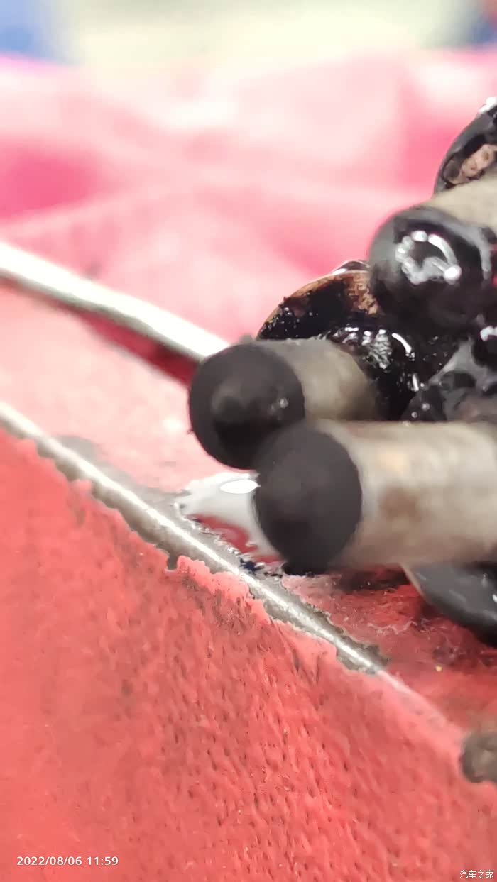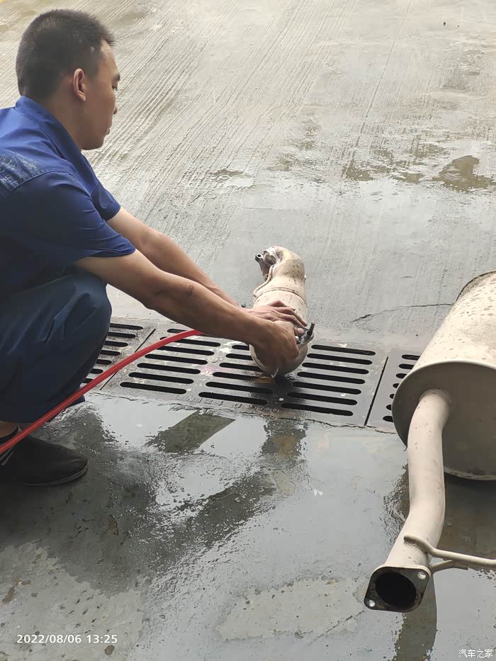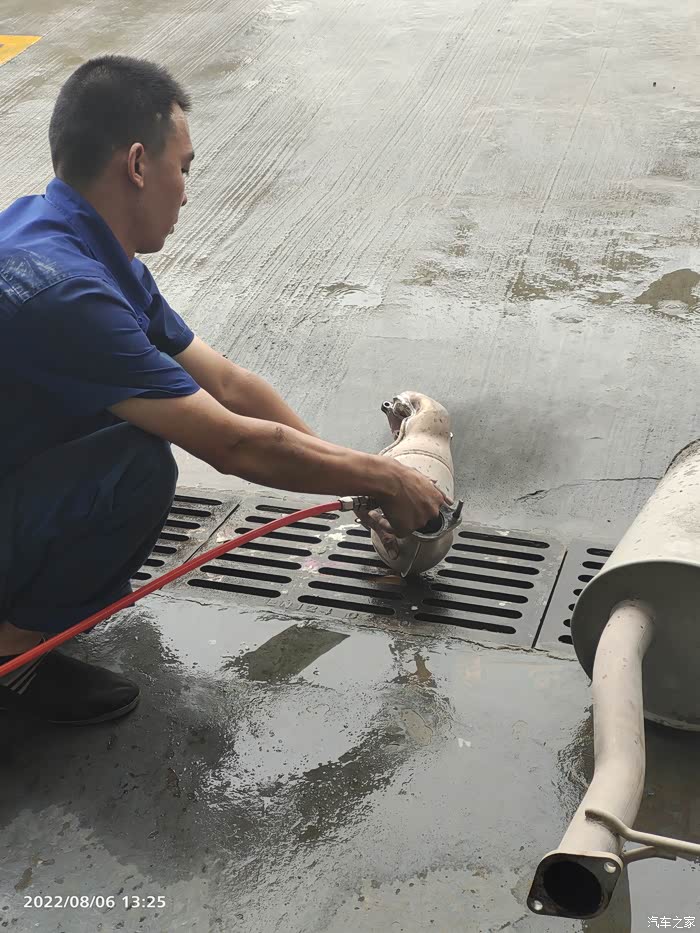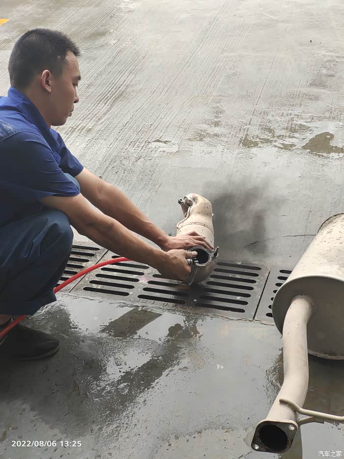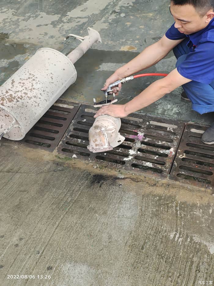 记住:三元催化器用高压气体来吹。师傅没有用水哦!
