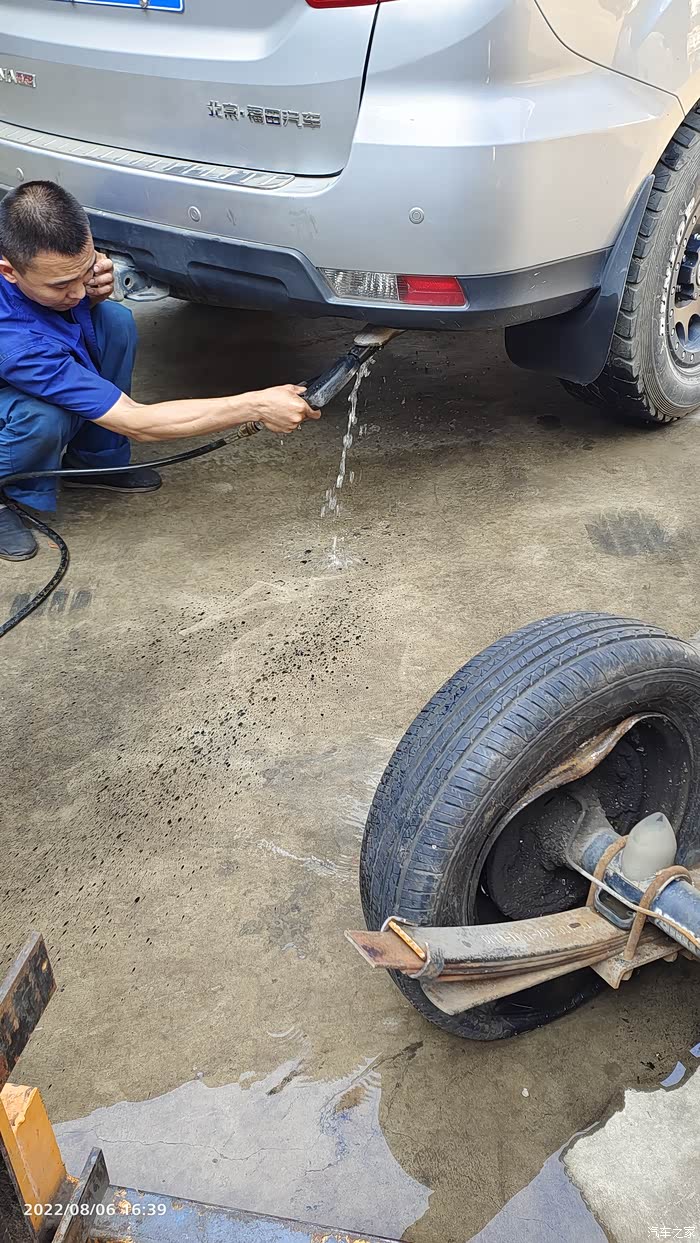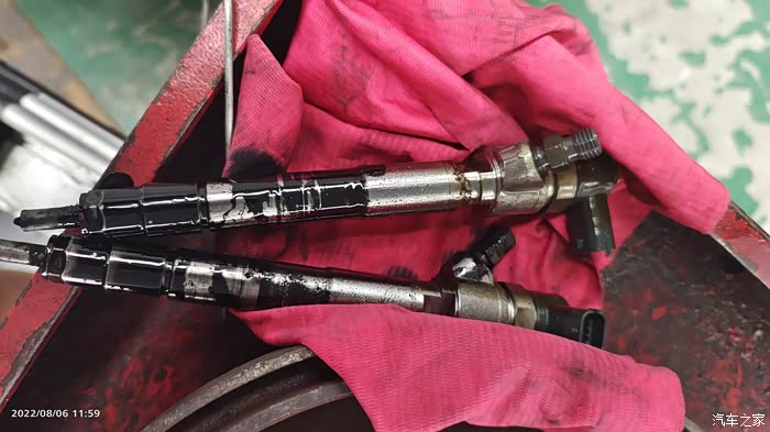 喷油嘴经过调校装车后,启动车用高压水枪冲洗里面的黑色粉末,直到流出的清水为止!