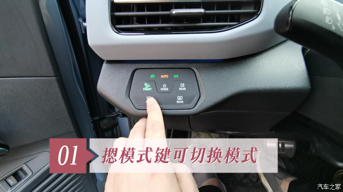 ②一般都是在auto状态,就是自动状态,灯光是自动调节。Mode点触一下,就是开启近光灯,这时候近光灯和示廓灯都亮起来了。