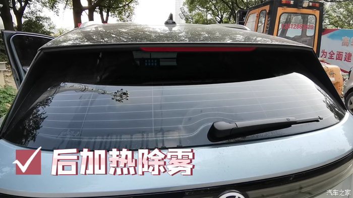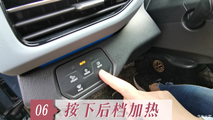 ⑥同样,如果后挡风玻璃有水雾,开启REAR键,这时候后档就开启加热功能了,如果有水汽的话,也是很快就清除了。