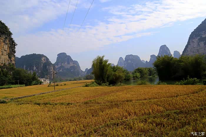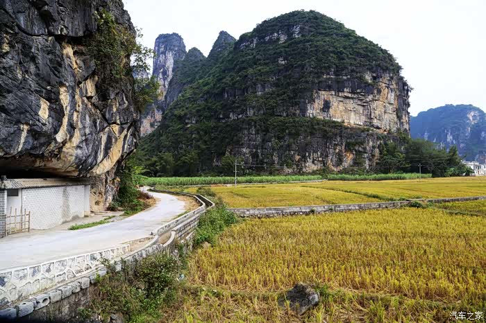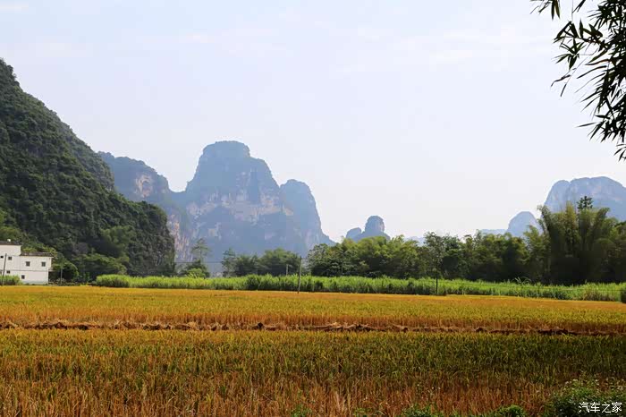 虽然德天瀑布比较偏,但一路上风光如画,只见道路两旁群峰峭拔、山色空朦,山间绿水梯田、茂林翠竹,山底碧水涟涟、绿草茵茵、稻田谷浪,可谓移步换景,美若画卷