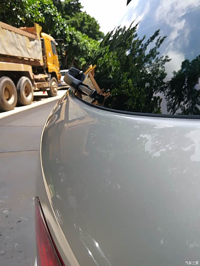 看到没,在车顶检查到一道划痕,4S店会处理干净。