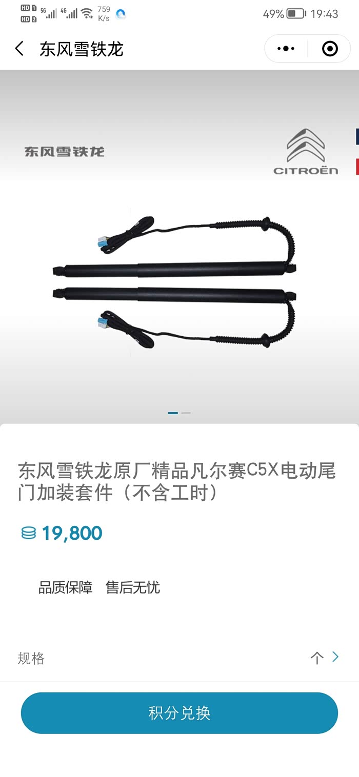 由于我选择的是凡尔赛c5x一级车享不凡,也就是入门级车,很多人都说凡尔赛C5X一级车性价比是最高的,就像官方宣传的一样,入门即豪华,我也觉得一级车家用代步够用了。但是偶尔老婆开我的凡尔赛C5X的时候,老婆就会跟我吐槽后备箱不好关,对于相对弱小的女生来说,可能习惯于电尾门的,确实会不习惯。最近官方小程序上上架了凡尔赛C5X的电尾门了,这下好了,可以加装原厂电尾门了。