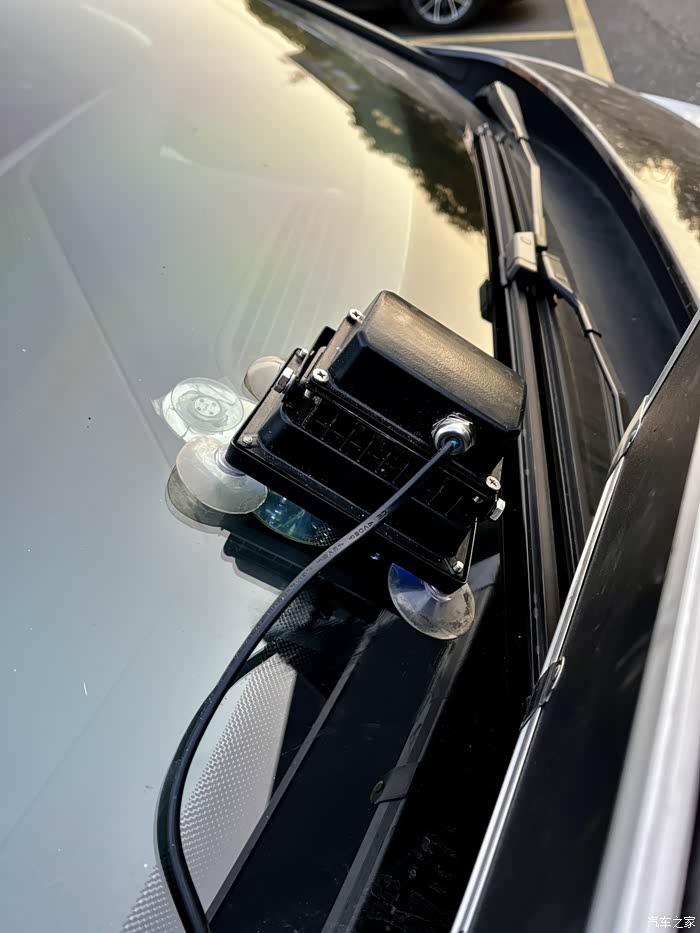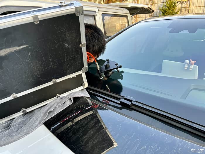 师傅带着工具就开始了玻璃修复,因为机器需要通电但ID3前排是没有点烟器接口的,所以用的是师傅的车接的电,师傅说我还好是当天处理,否则过一个晚上气温低可能会裂的更严重