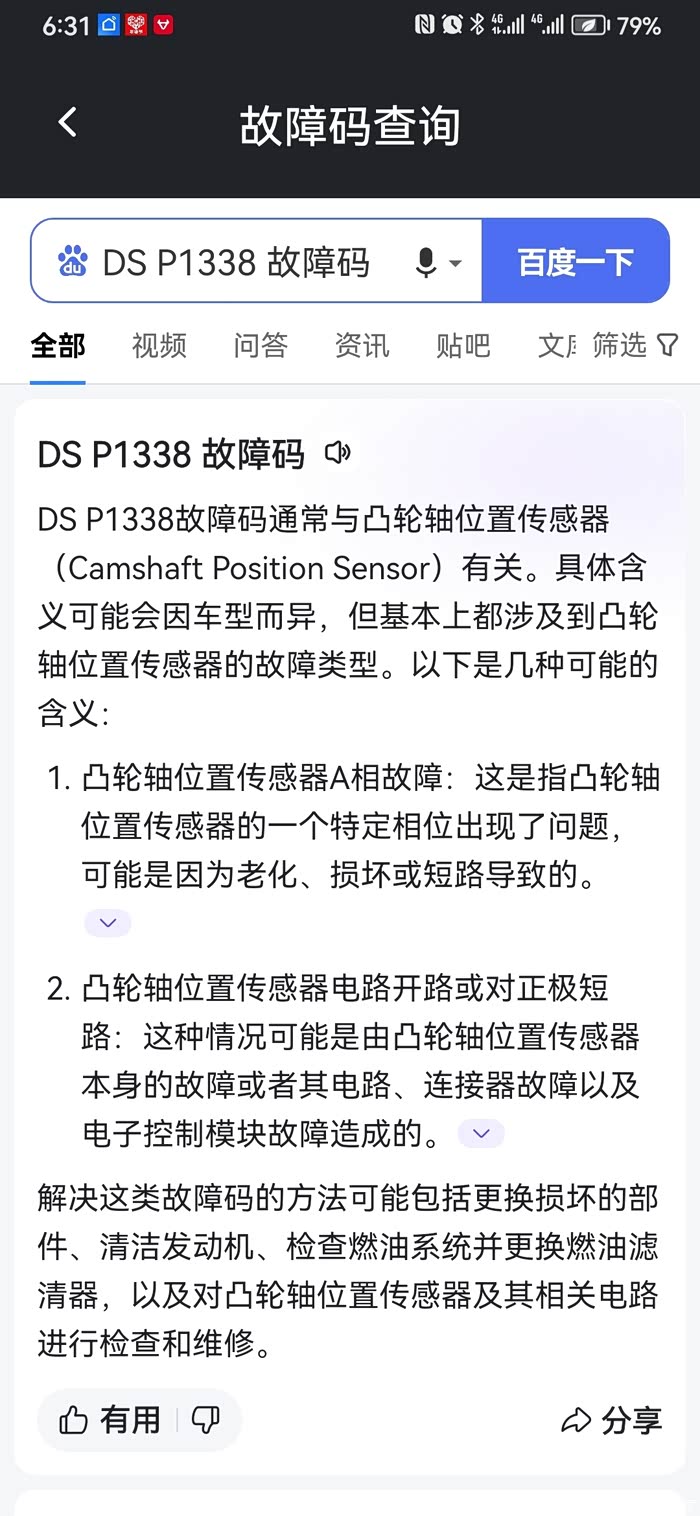 用OBD蓝牙盒子检测一下故障,读出代码如下