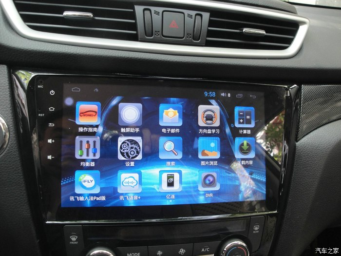 去年家里买过一辆长安铃木锋驭小型SUV,因为选择的那款不带显示屏,就自己在网上搜索、比较、购买、安装,有过一次经验。今年4月底,家里又买了一辆14款奇骏(2.5CVT四驱豪华版),原车一体机带的屏只有5寸,且不带导航,遂决定更换。因此又走了一遍去年锋驭的上网搜索、比较、购买、安装的路子。4月29日收到,打开一看着实有点担心,主要是感觉太单薄,厚度不足原车一体机的一半。