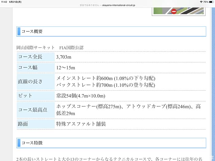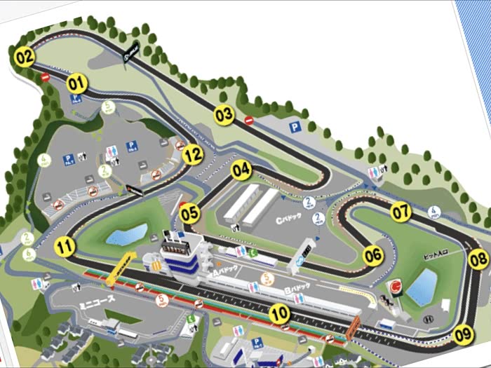 这是比较早的冈山赛道图,现在在11号到12号弯到之间有新的摩托车专用弯道。