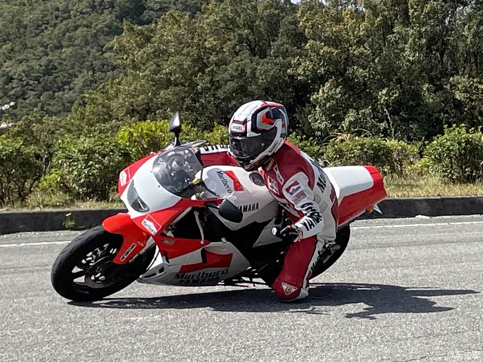 再次强调一下,不管是赛道还是山道,压弯是靠腰部以下的力量,不是靠肩膀和上半身的力量(有例外,比如一些本来就压不低的老车,这里不讨论),外挂磨膝,挂住你的是你的屁股,外侧大腿和外侧的脚,身体的其他部位都要放松!!!
