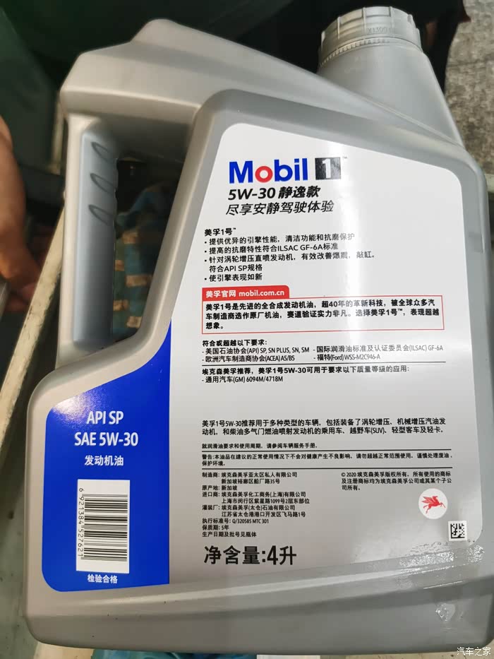 背面,是最新的SP以及GF-6A认证,A5B5低粘度30油