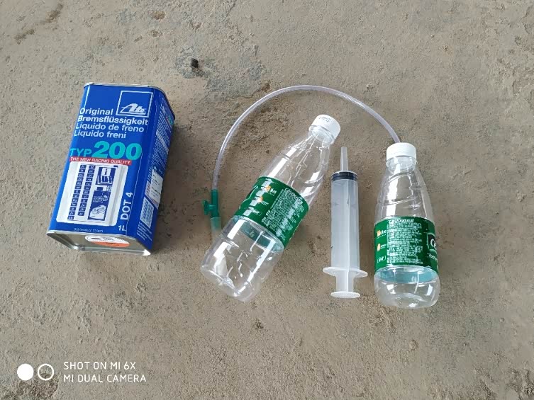 准备刹车油1升,针筒,软管,接油瓶,m10,m11开口扳手各一把