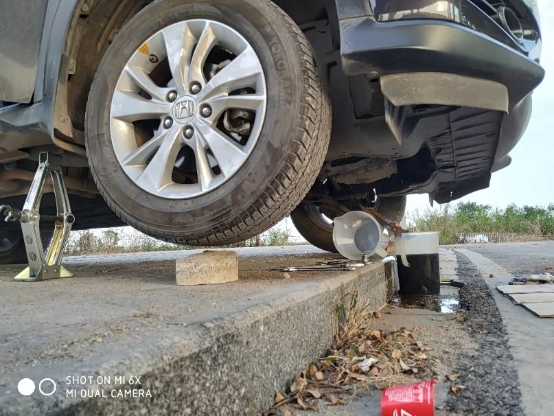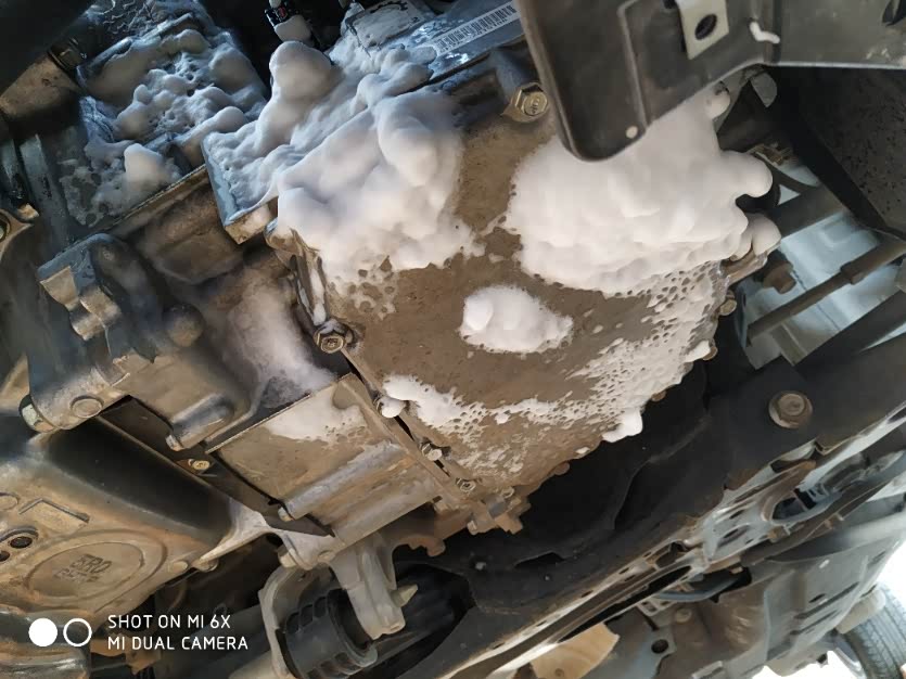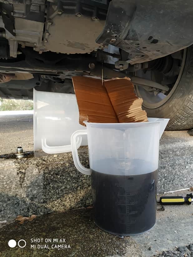 自重力更换变速箱油,打开入油口(在空气滤芯下方的胶盖),检测口(变速箱中间位置M17外六角螺母),放油口(变速箱底部位置便用中飞扳手),倾斜车身,等了半小时,放足3.8升