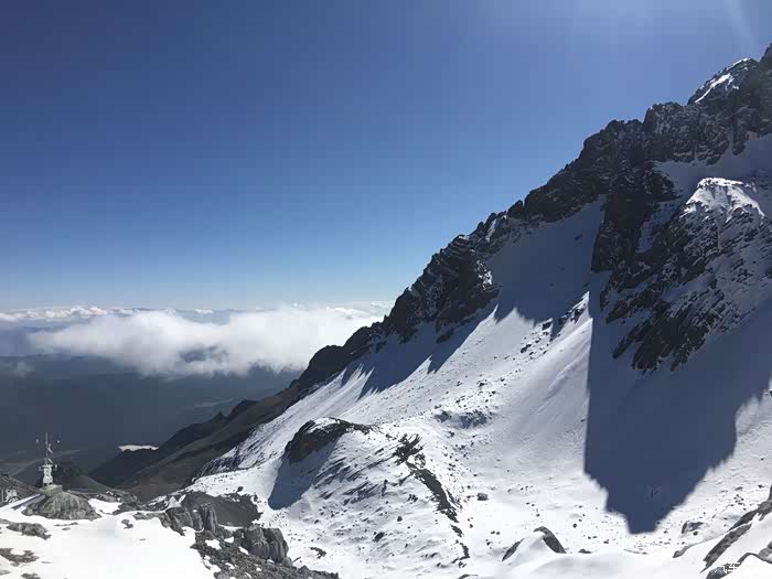 一直崇拜、欣赏、向往巍峨雄壮的高山。玉龙雪山便是其一,山上的皑皑白雪与清澈的天空白云相辉映